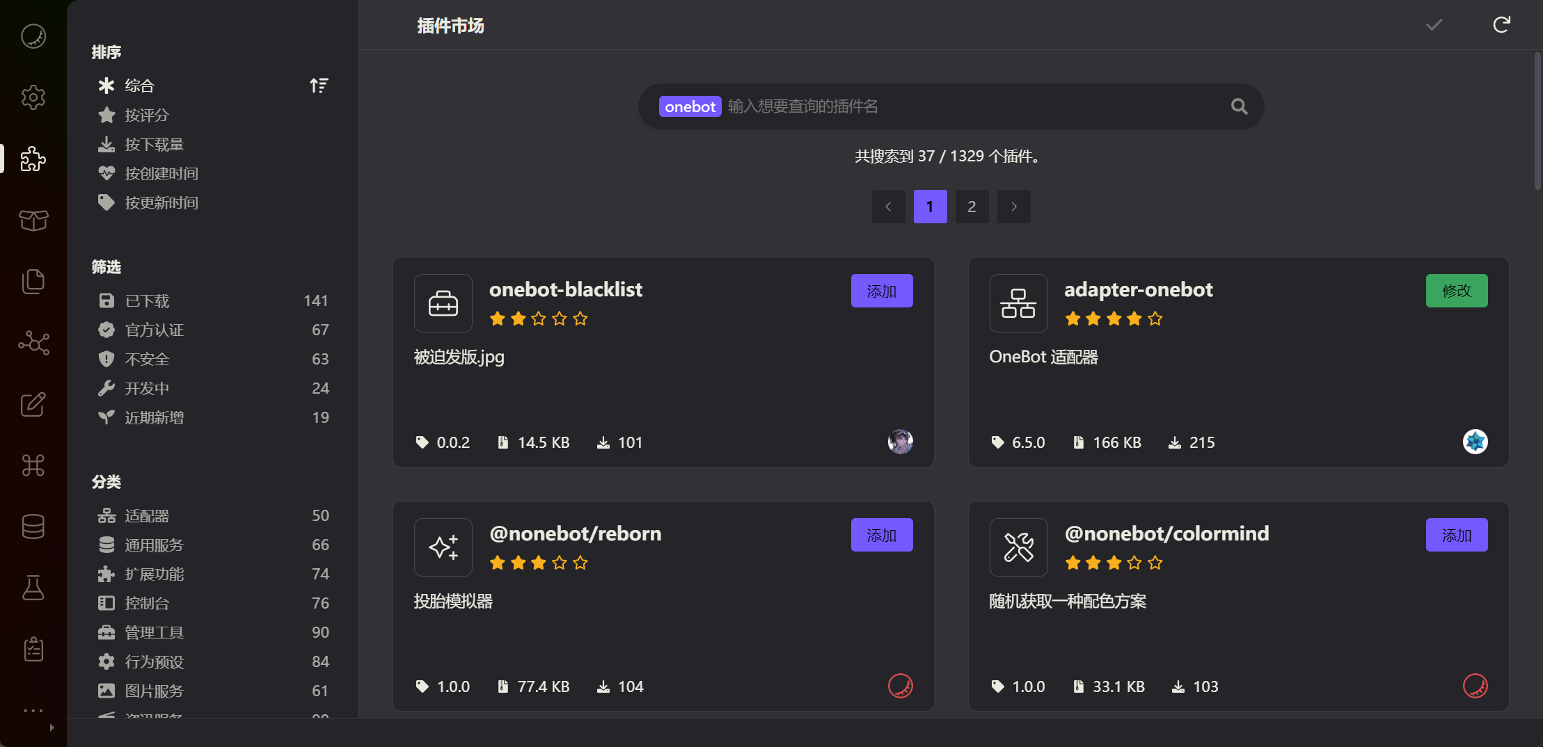 1. 在 Koishi 插件市场搜索并安装 adapter-onebot